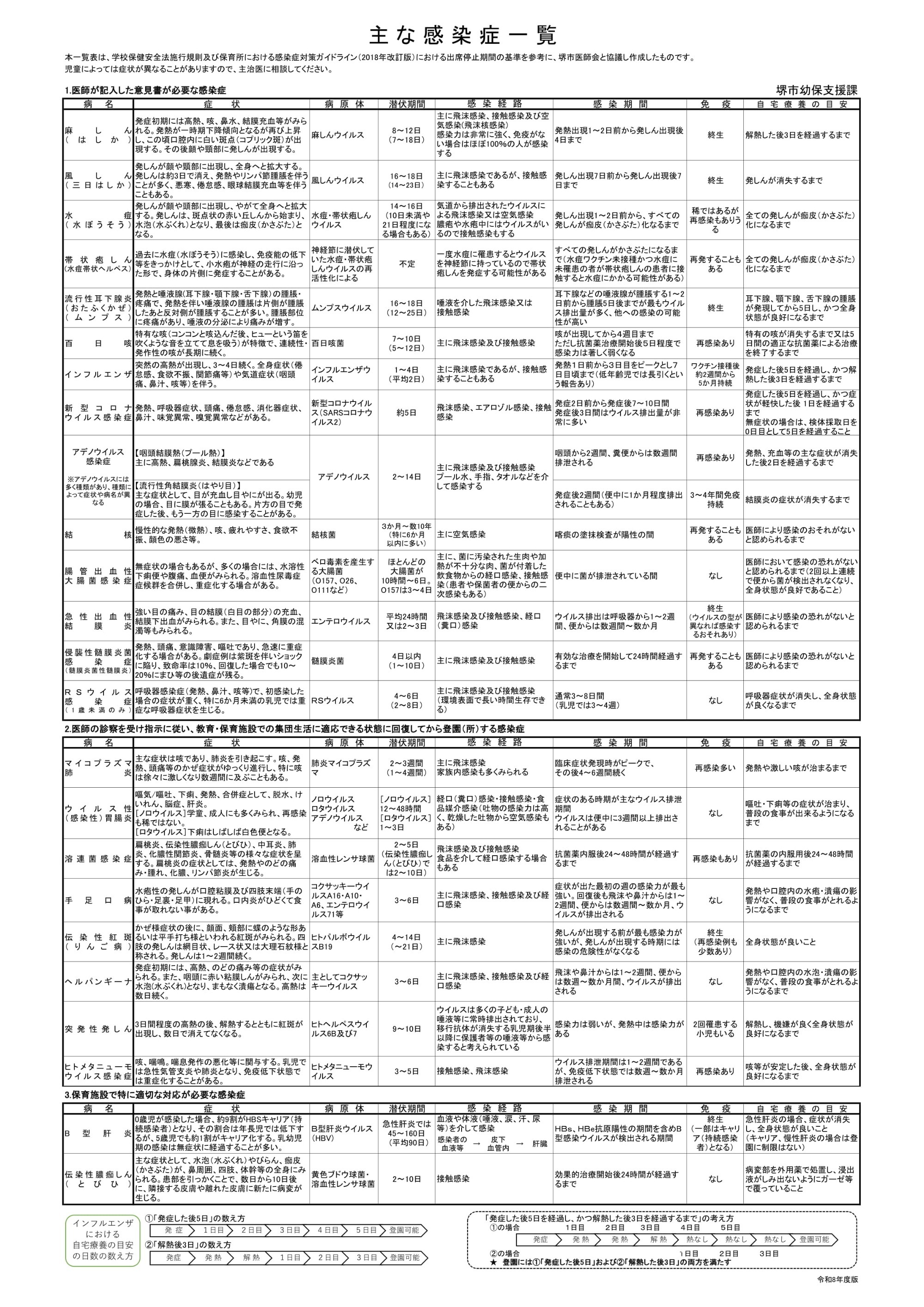 「主な感染症一覧」